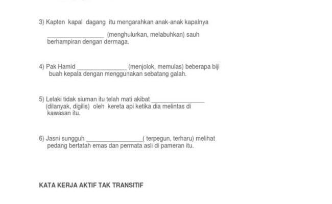 Yaakub menunjukkan se….sangkar yang berisi dua…. 05.01.2020 · 5.1 tb 5.1.4 kata kerja tak transitif 1.3.2 ucapan 3 cahaya 5 serasi 1.1 dt 2.2.3 soalan pemahaman peta pokok 2.1 bersama perpaduan bc 3.1 tu 3.4.2 perenggan pendahuluan menganalisis 4.1 sb 4.3.1 karya fiksyen 5.1 tb 5.2.1 kata ganda 6 perpaduan 1.1 dt 1.4.1 perbualan 2.1 bc 2.1.1 bacaan mekanis 3.1 tu 3.4.3 perenggan isi dan kesimpulan 4.1 sb. Download free pdf download pdf download free pdf view pdf. Download free pdf download pdf download free pdf view pdf. Kata adjektif kata sendi nama; 07.03.2019 · kata kerja rajah 2.27 simbol hubungan contoh: Kata kerja transitif & tak transitif; Melakukan sesuatu untuk orang lain (benefektif) contoh: